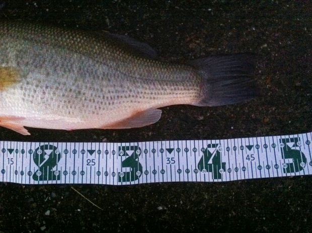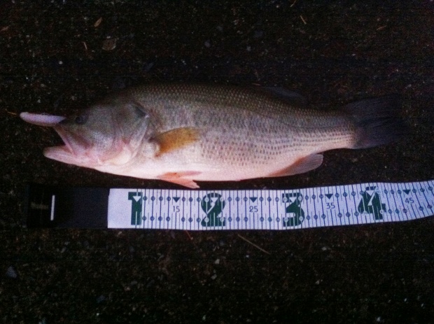 とりあえずハスの葉の少ない方向に投げて水面を巻いていると、激しい捕食音と共にロッドが持っていかれそうになったので少々焦ったw