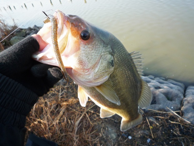 冬は大きいサイズが出ることがたまにあり、体力のあるデカバスのみが動き回って、何かのタイミングで餌を食べるようです。
