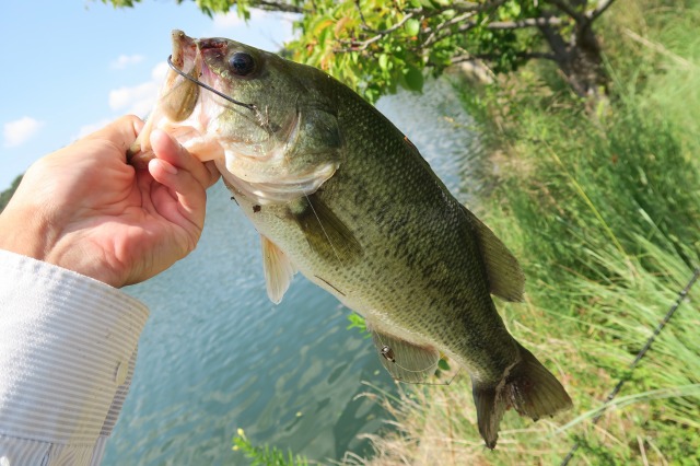 35度越えの日差しの中、池の底を狙うのは忍耐のいる釣り方だ。