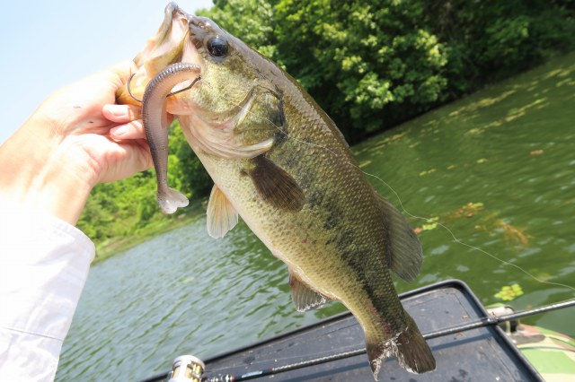 障害物の回避能力に優れていて巻くこともでき止めることもできる。シーズンといいフィールドの状況といい、今はシャッドテールワームが一番マッチしているのではないだろうか。2016年のブームはシャッドテールワームで決まりかも!?