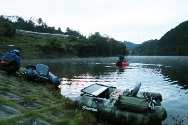 今年のフローターシーズンも終盤となってきたので、今シーズンが終わる前に浮いておこうという話になり、今回早速浮いてみることにしました。1人フロートボートがいるのだがダムを攻めるには羨ましい乗り物だ!
