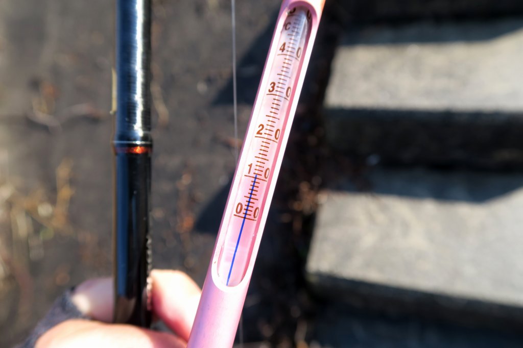 普段フローターで浮く山間エリアの野池は8~9度前後だったけど、平野部の野池は11度とかなり暖かい。
