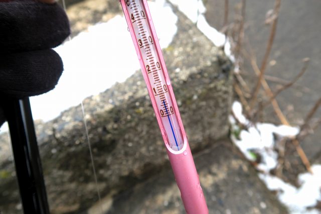 水温を計ってみると7度、冷え切っていないのか今回の寒波と雪が積もった割には暖かく感じられました。