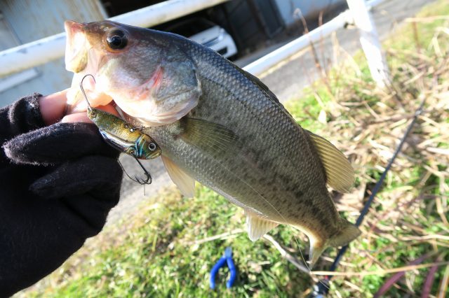 足元の水深は1m程しかなく、少し沖の一段と深くなっているブレイクから追いかけてきたバスだろう。雪が降る日でも釣れたのは経験上珍しく、集中力を絶やさず投げ続けた甲斐があったと思います。
