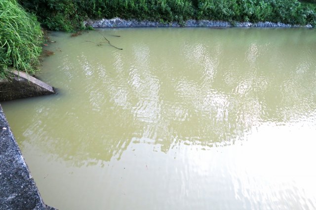 しかしどこも激濁りと増水で、今まで釣れていた場所に浮いてもさっぱり釣れず…、台風で100mm以上の雨量が一気に降ったことで、どこもカフェオレ状態となっていました…。