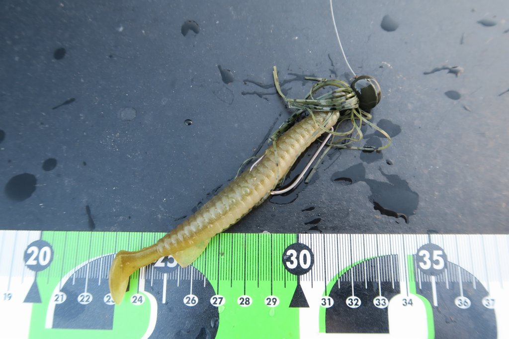 他にもメタルバイブやフットボールジグで深いところを探ってみたら、コバス祭りでまともなサイズは1本だけでした。