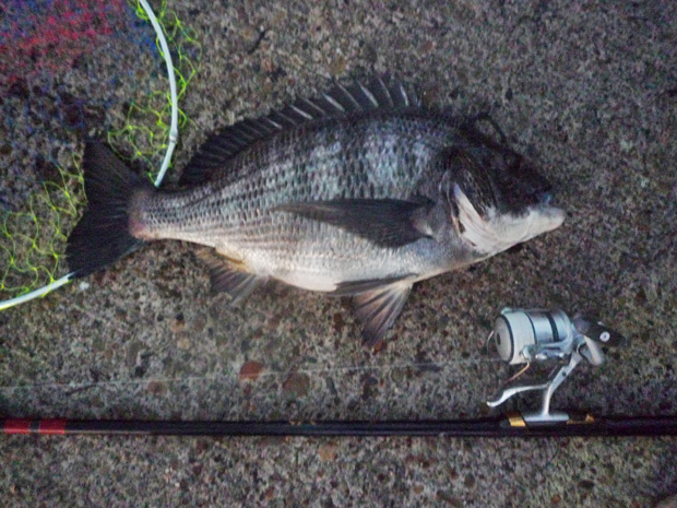 夕方になり、餌取りが不思議といなくなり、足元にポイントを絞ってやってみるとウキがゆっくり沈む当り。