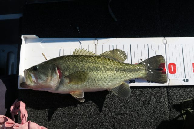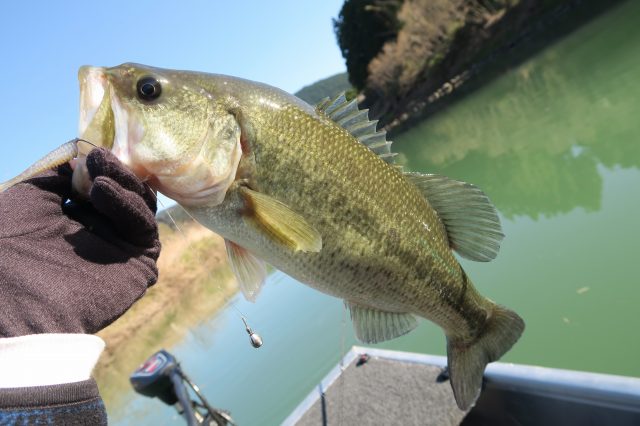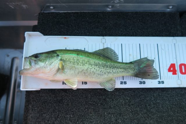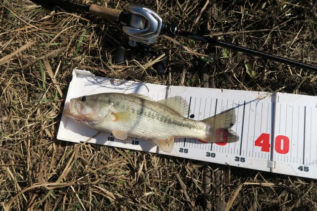 川があまりにも釣れなかったので行く場所に迷った挙句、野池でメタルバイブを投げ続けていると何とかアベレージサイズが1本!