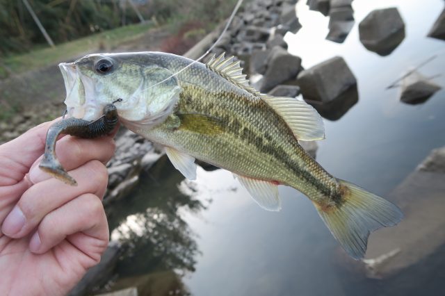 中筋川に移動して下流を中心におかっぱりしてみるとテトラ周りでコバスが釣れただけでした。